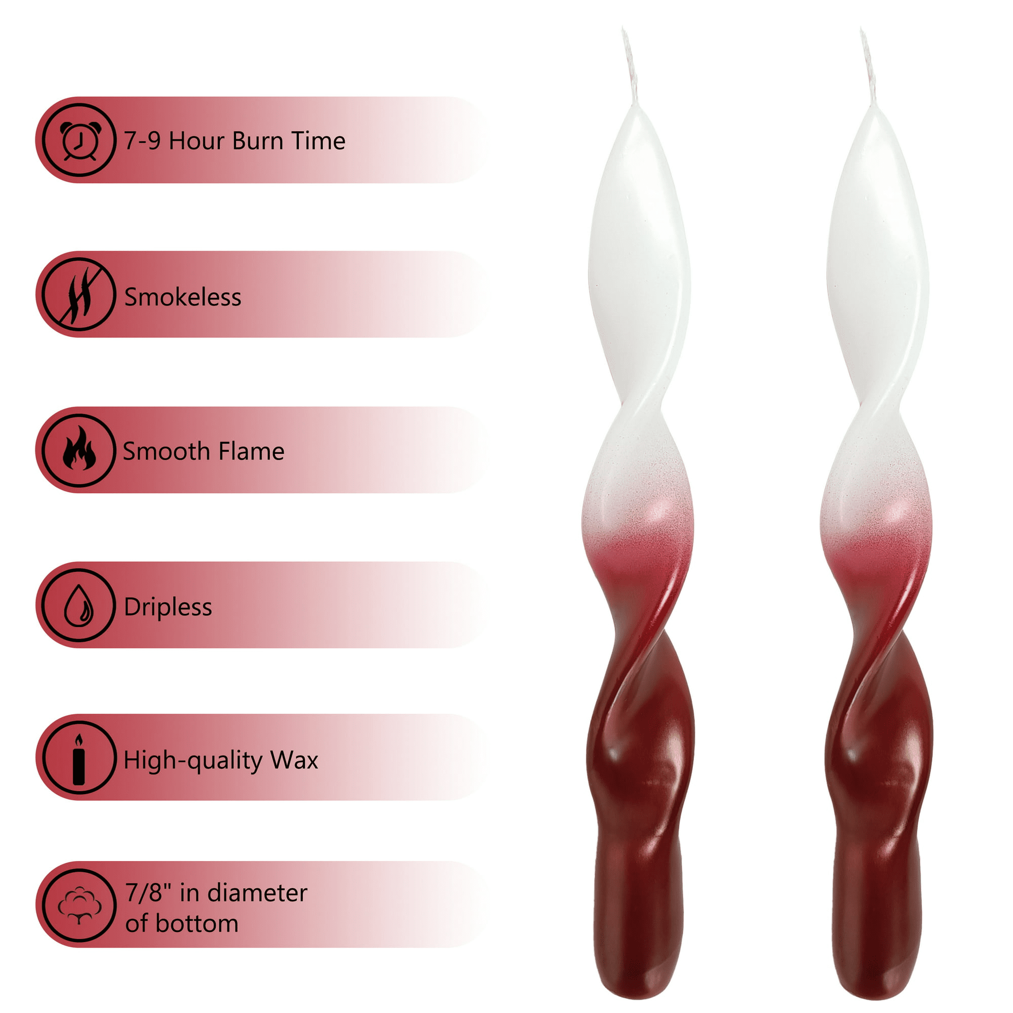 FCMSHAMD 8.8'' White Red Taper Candles - Unscented Dripless (2 Pack)