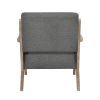 Description & DimensionsAngled lines intersect to create the modern profile of the Ollen Collection. The rusticated solid wood frame is highlighted with an antique walnut finish. The dark gray fabric upholstery that covers the seat and back of the chair will serve as a complement to your home's décor. The padded seatback features tufted contouring for added accent.PRODUCT DIMENSIONS: Overall Dimension: 27.5" x 32.5" x 32.5"HSeat Width: 22.5"Seat Depth: 22"Seat Height: 19"Arm height: 23"Listing Includes: One Accent Chair Only.Simple Assembly Require.