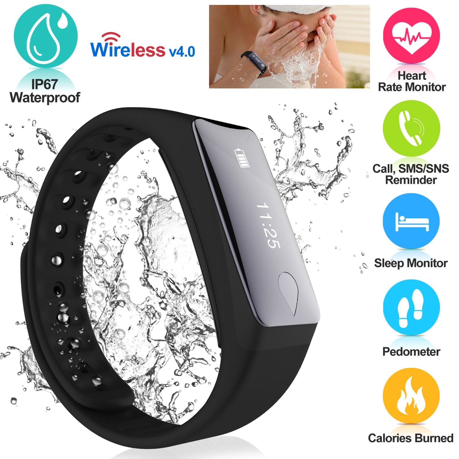 Home > Fitness Tracker Activity Tracker Watch with Heart Rate Monitor IP67 Waterproof Smart Band Step Counter Calorie Counter Call & SMS Pedometer