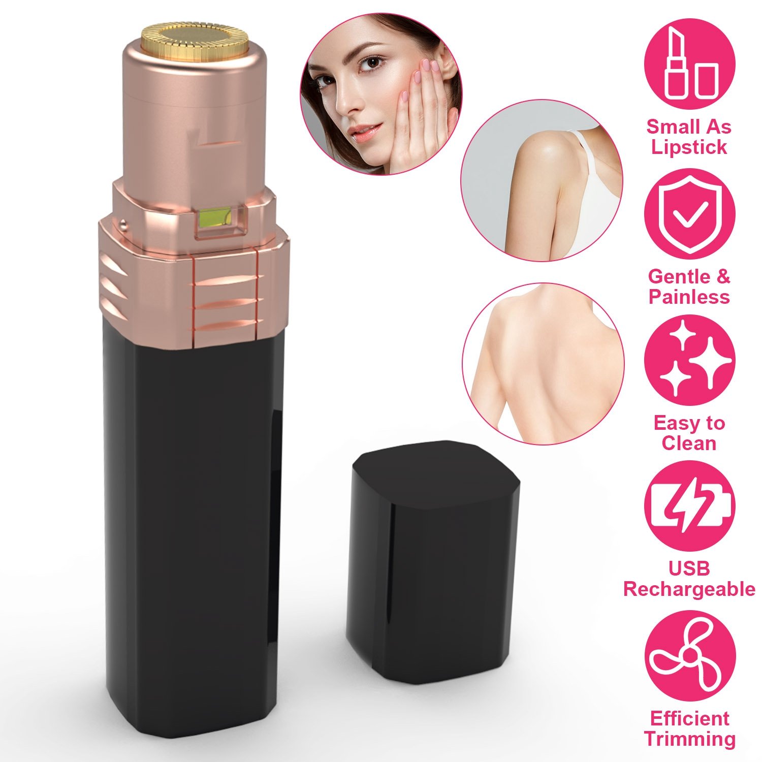 Home > Flawless Facial Hair Remover Painless Facial Hair Epilator USB Rechargeable Women\'s Face Shaver with LED Light for Lip Chin Arms