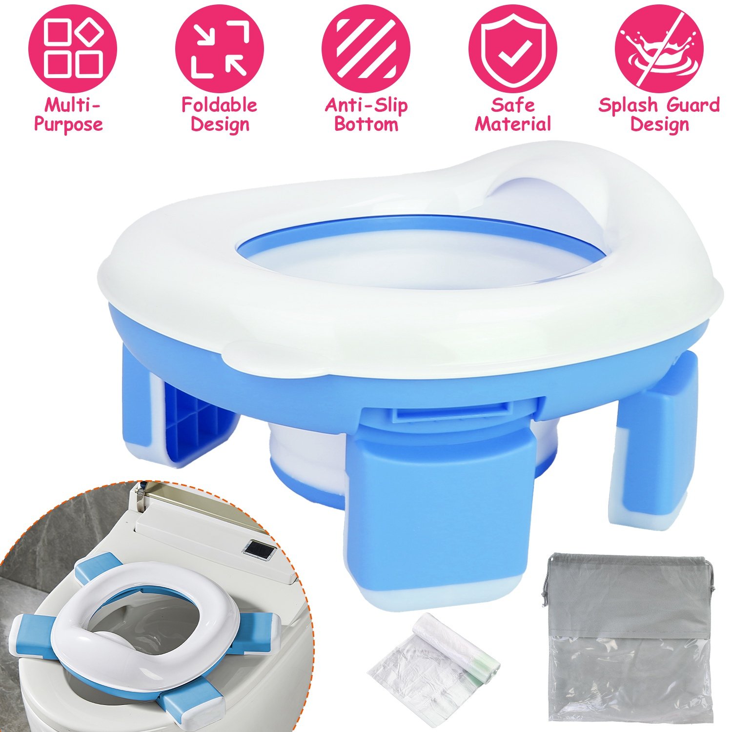 Home > Portable Toddler Potty Toilet Foldable Potty Training Seat Cover with Splash Guard Include Storage Bag 20Psc Potty Bags Baby Toilet Trainer for Indoor