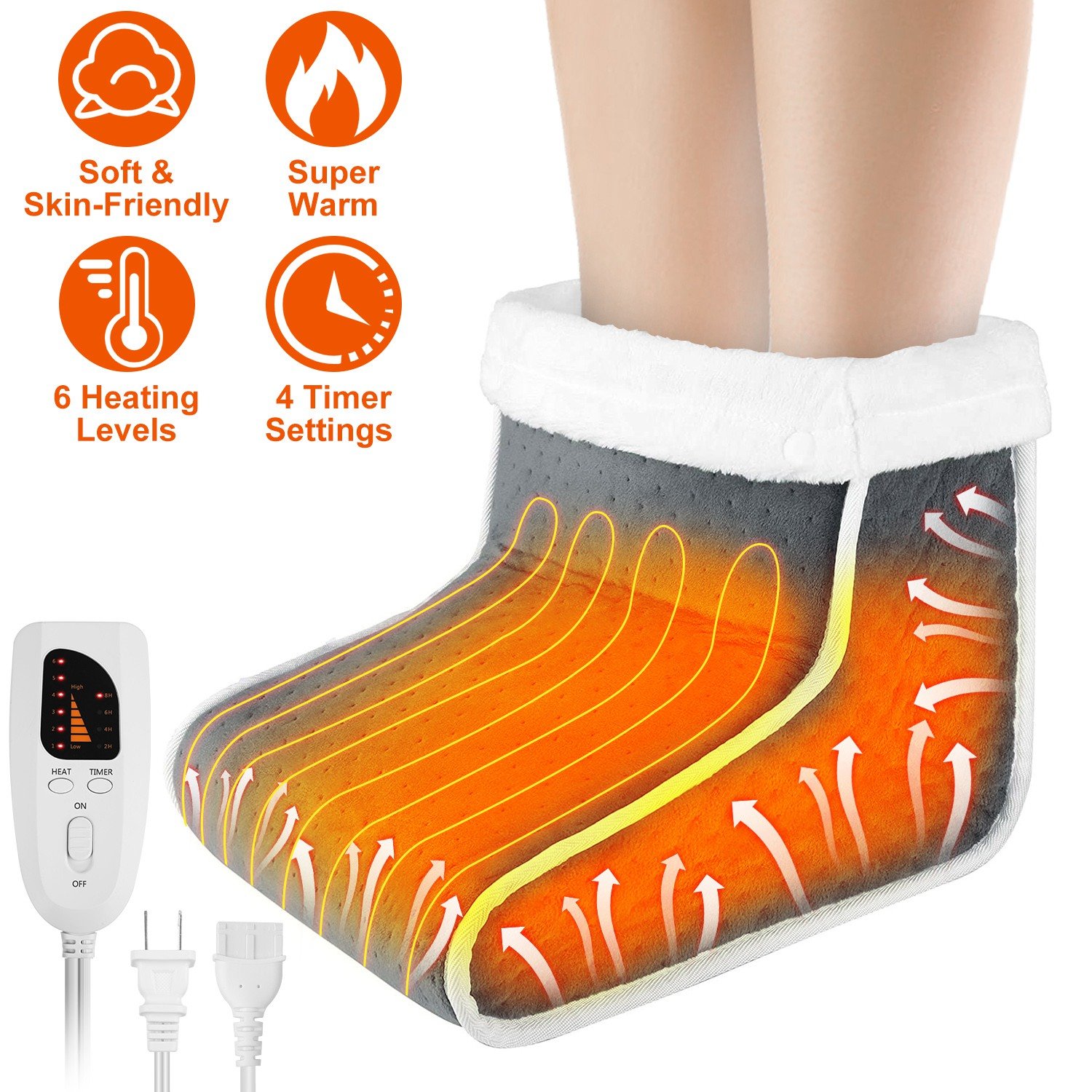 Heating Pad for Foot Electric Heated Foot Warmer Soft Leg Warmer Boots with 6 Level Heating 4 Level Timing