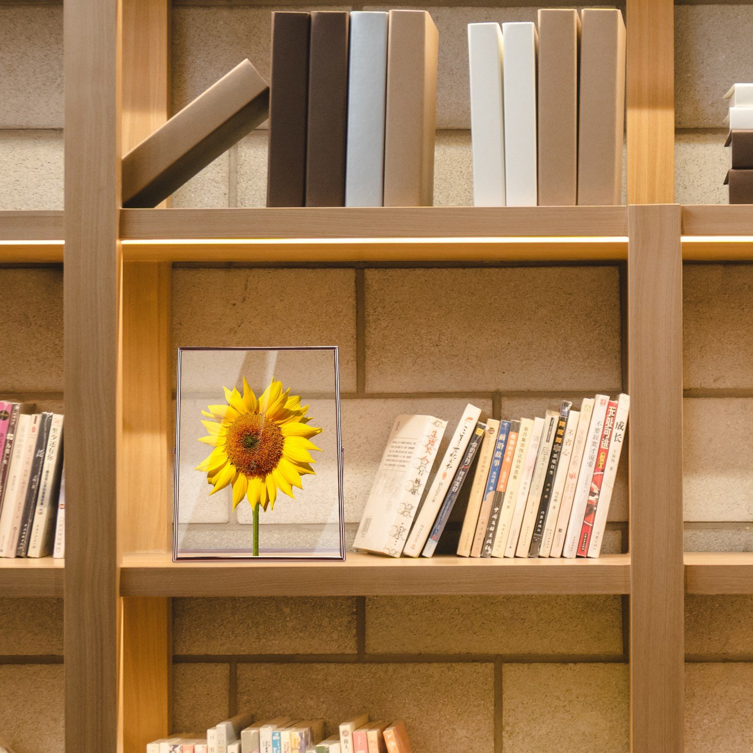 Home > 2Pcs Standing Rose Gold Metal Picture Frames 5x7IN 8x10IN Vertical Tabletop Floating Photo Frame Double-Glazed Glass Pressed Flower Frame for Home Dec