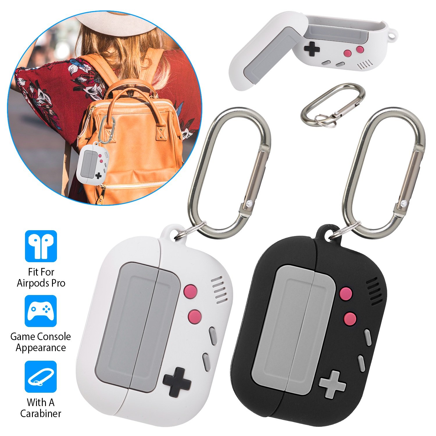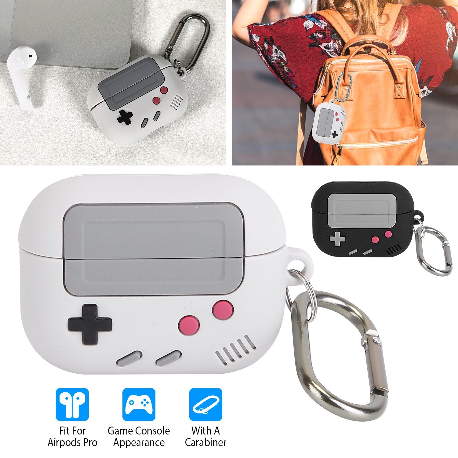 Home > Silicone Protective Case Fit for Airpod Pro Full Protective Cover Shock-Absorbing Soft Silicone Case w/ Carabiner