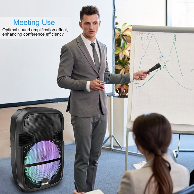 KOCASO Wireless Speaker Portable PA Karaoke System with 12" Subwoofer FM Radio Wired Microphone w/ DJ Lights FM Remote Control