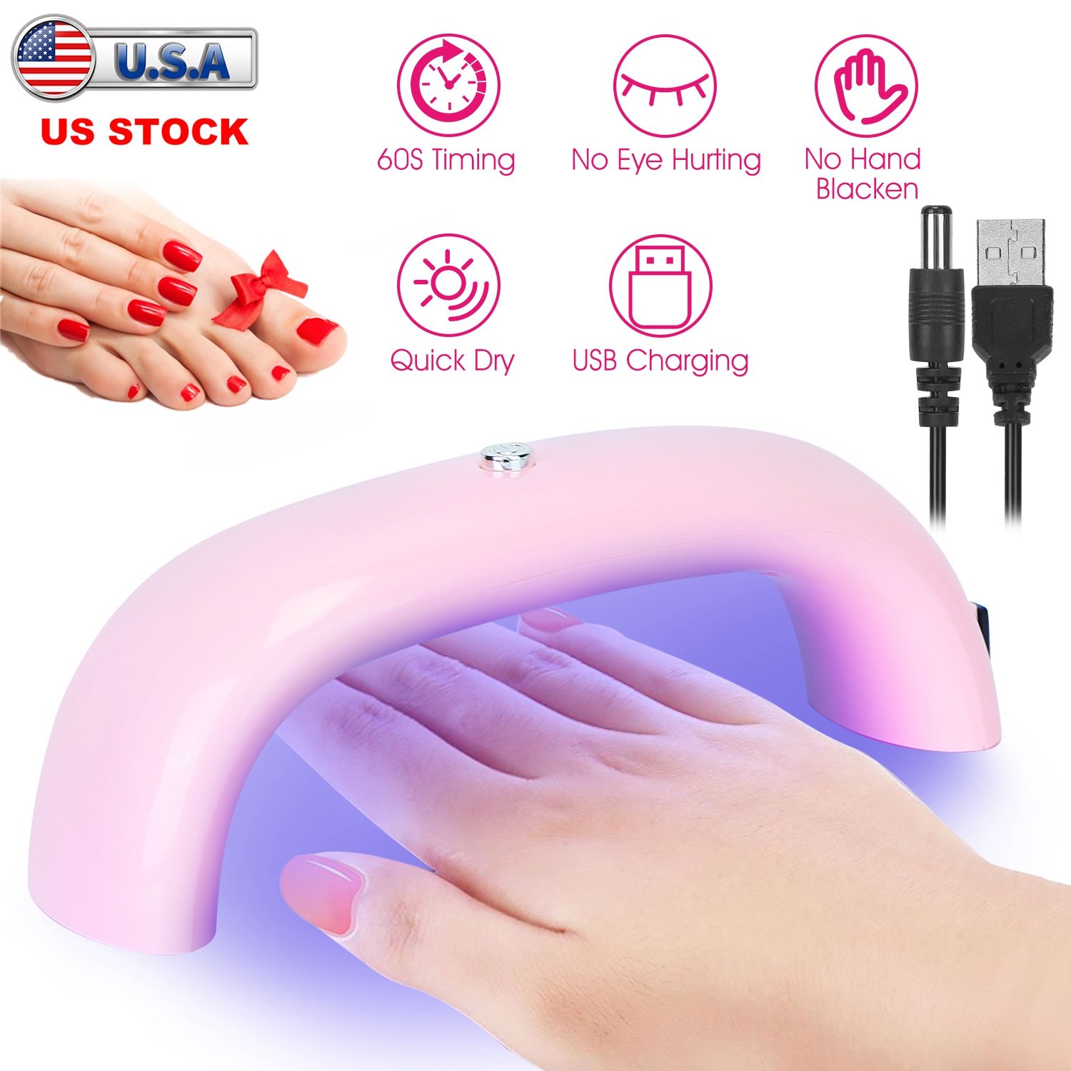 LED Nail Dryer Lamp 9W UV Nail Gel Polish Curing Lamp Portable Nail Drying Lamps w/ 60S Timer