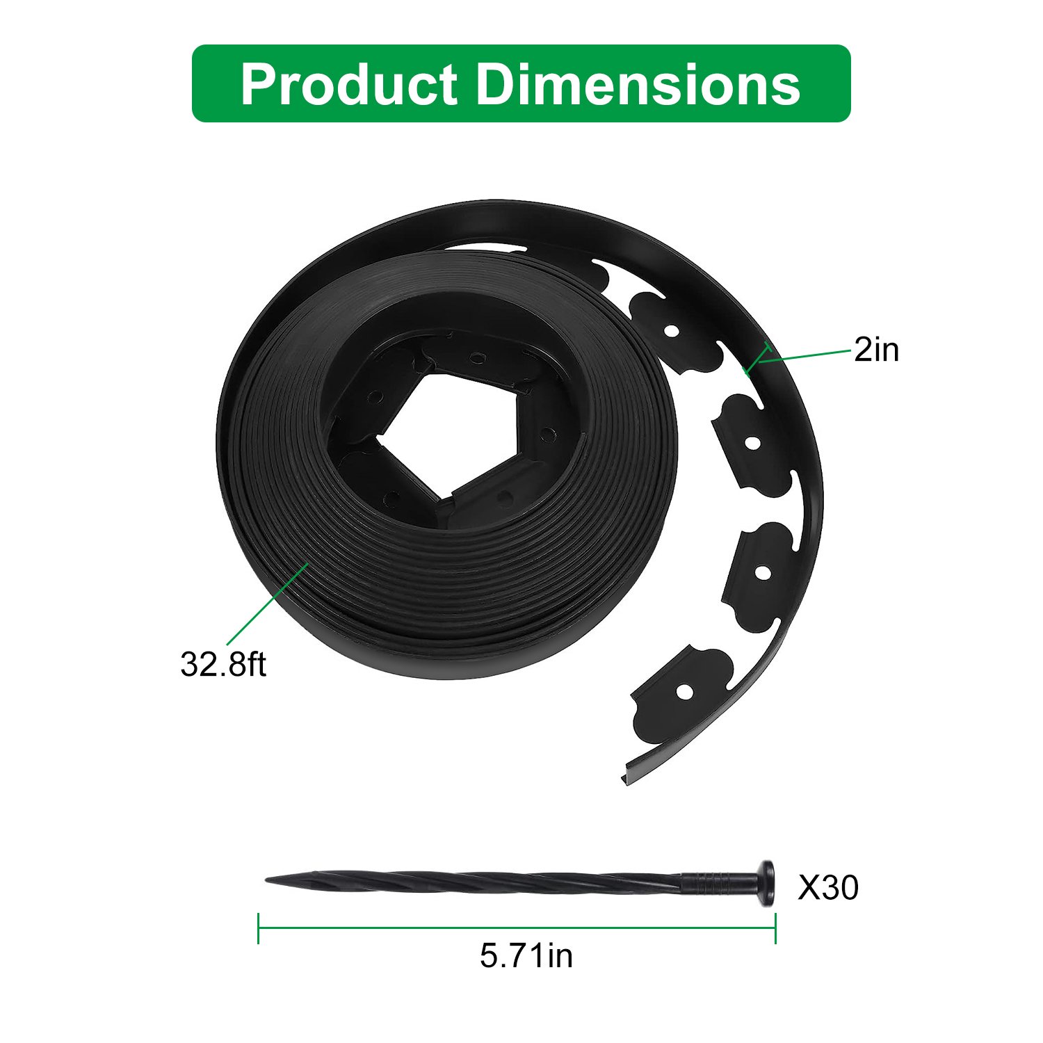 No-dig Landscape Edging Kit 32.8FT Plastic Garden Border with 30 Stakes 2In Tall Border Edging for Garden Lawn Yard Flower Beds