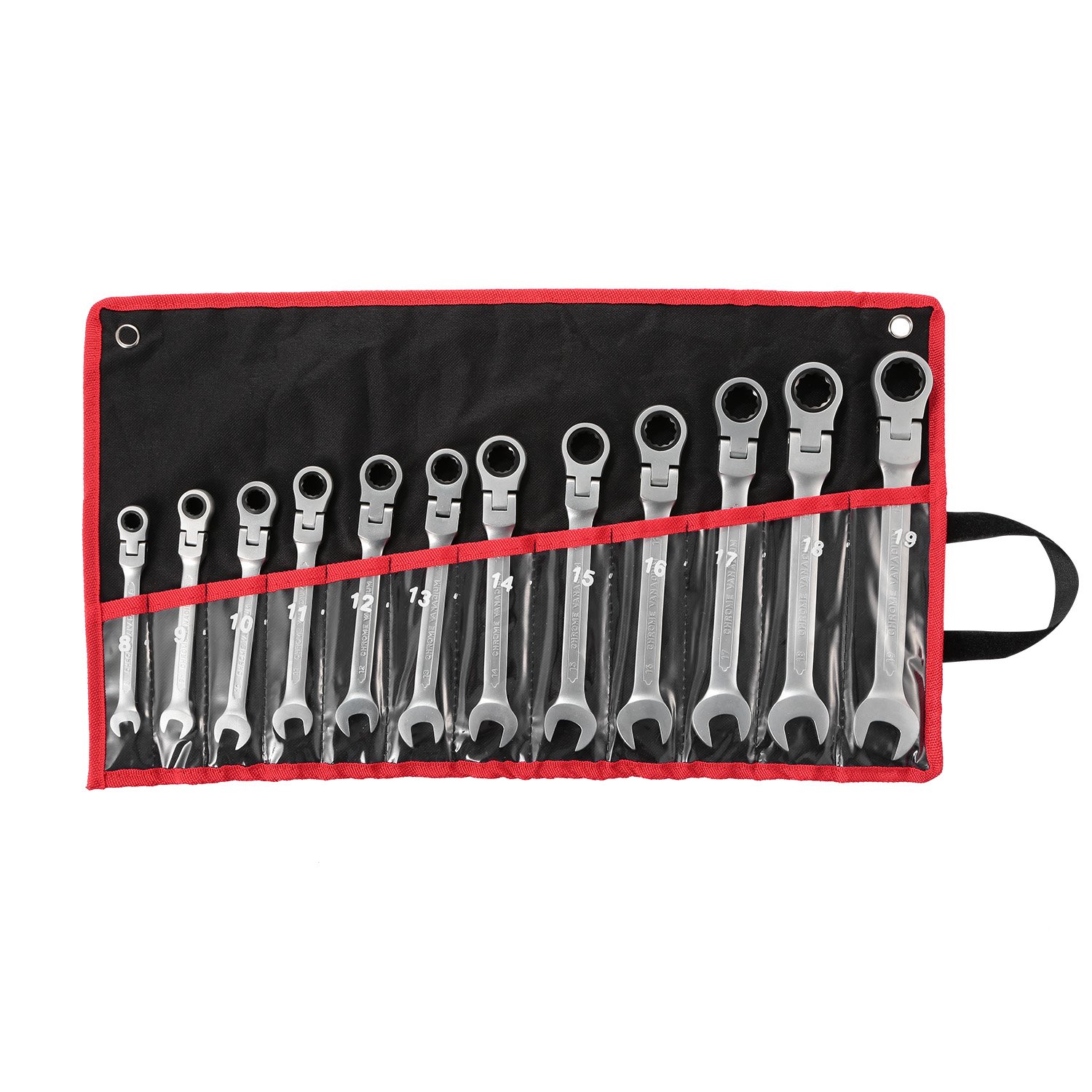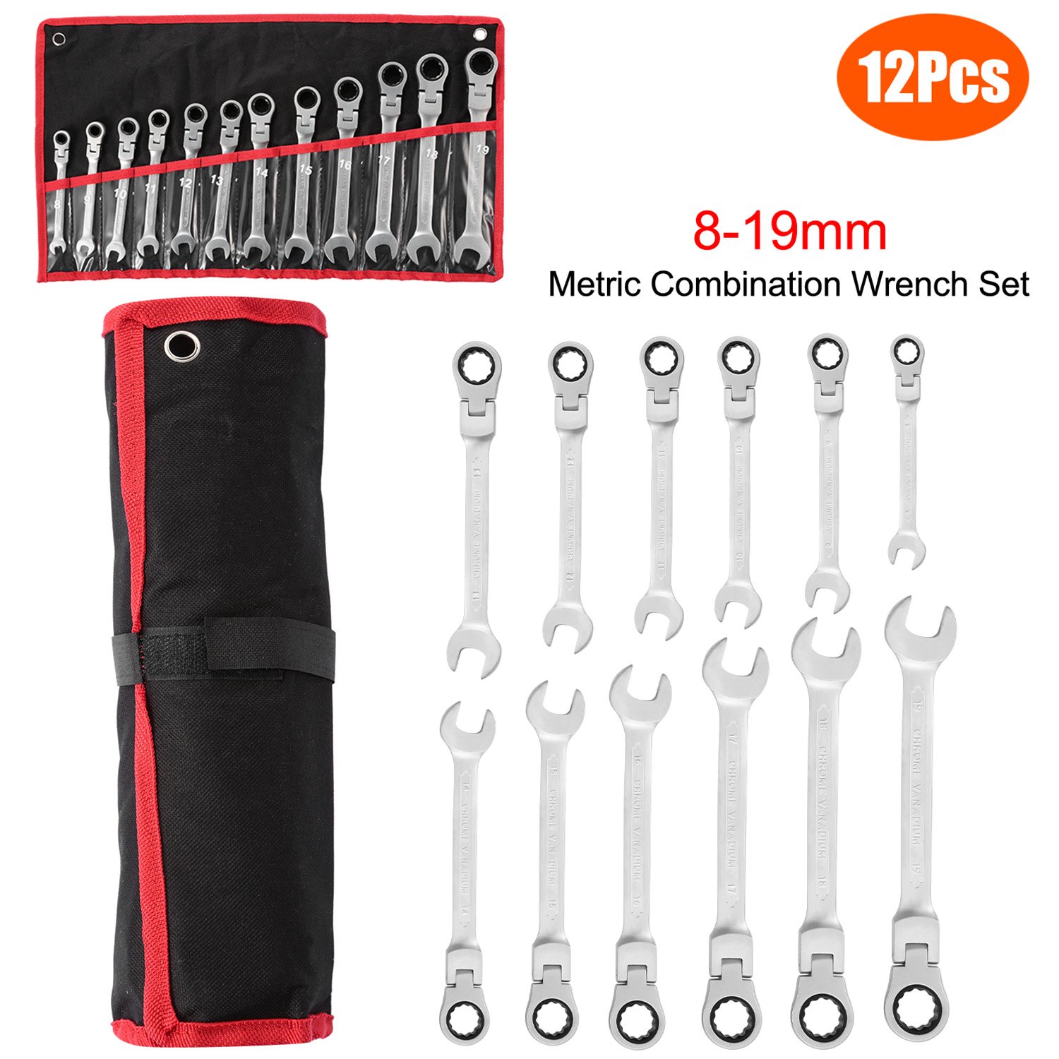 Home > 12Pc 8-19mm Metric Combination Wrench Flexible Head Ratchet Wrench Set Spanner Tool Set