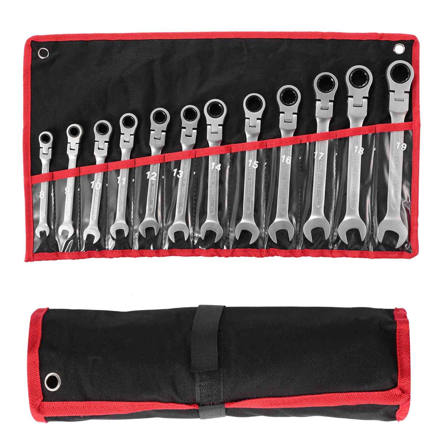 12Pc 8-19mm Metric Combination Wrench Flexible Head Ratchet Wrench Set Spanner Tool Set