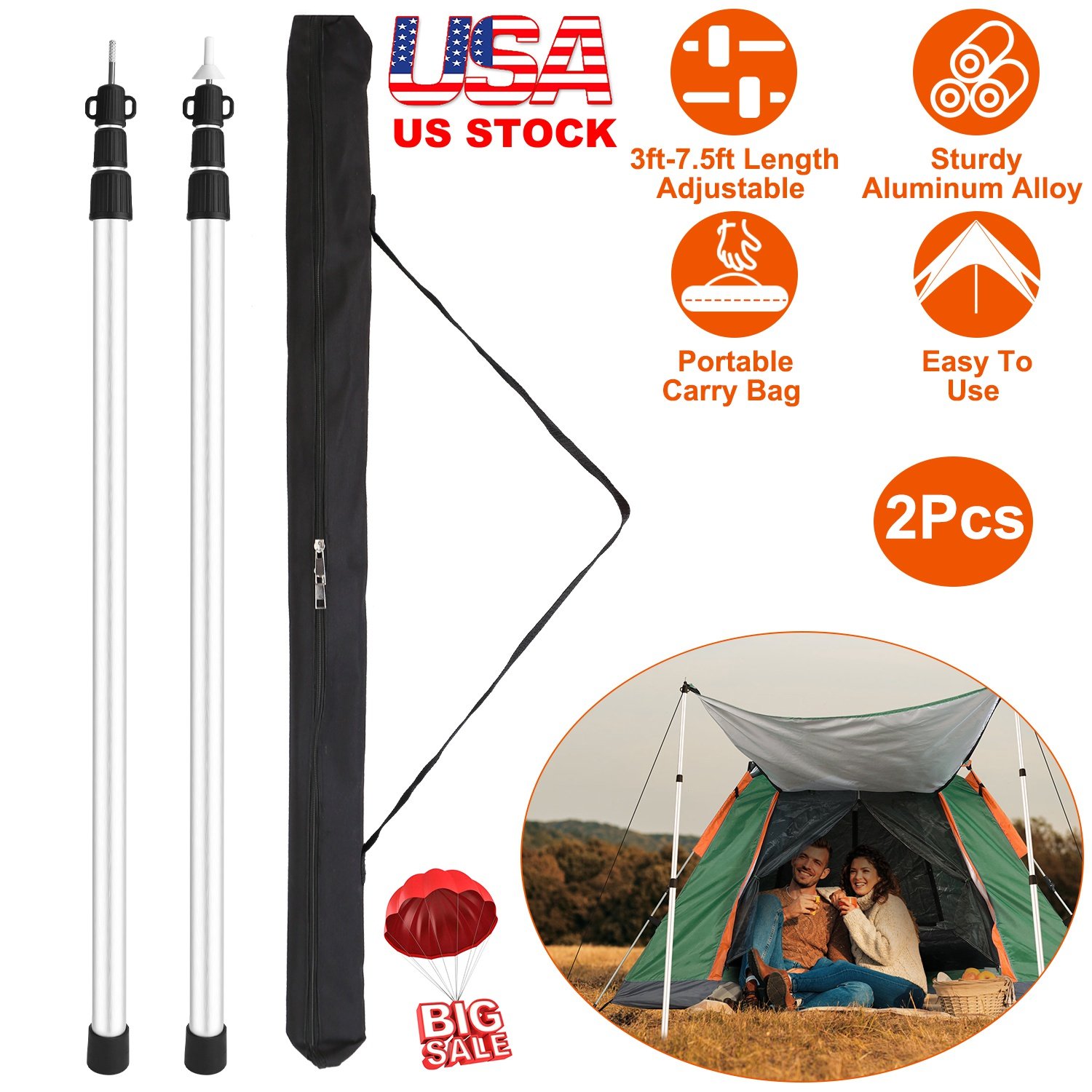 Home > 2Pcs Telescoping Tarp Poles Portable Aluminum Awning Poles 3-7.5ft Adjustable Telescopic Tarp Tent Rods