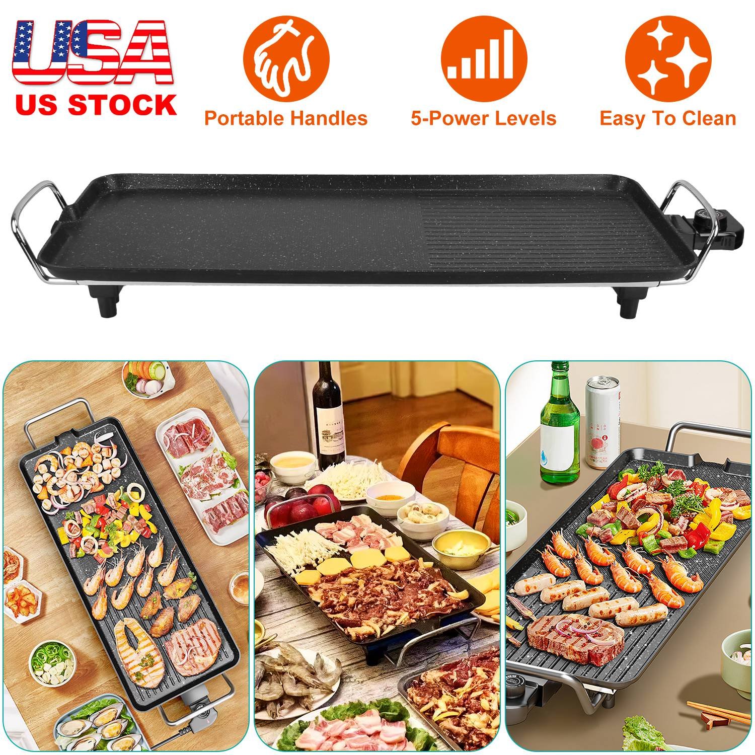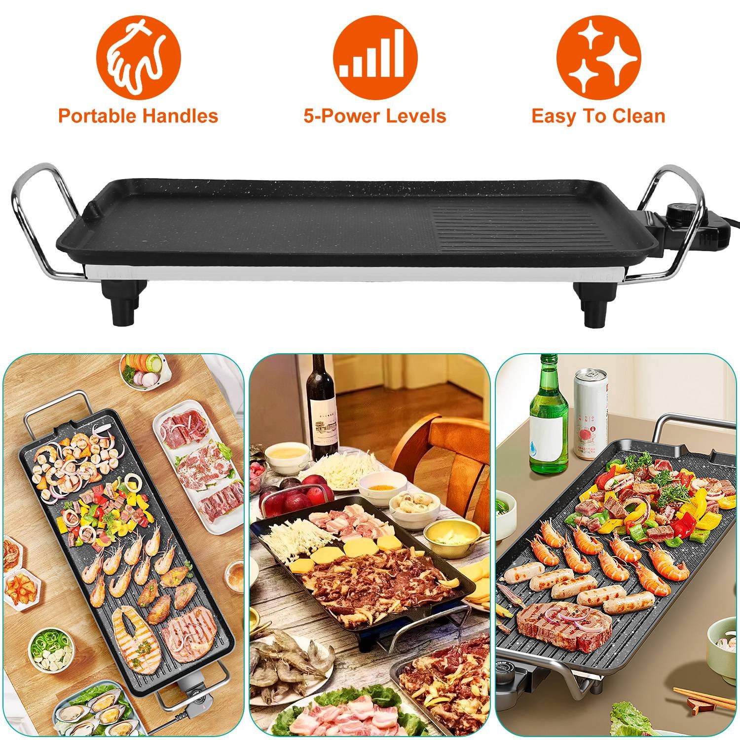 1400W Electric Barbecue Grill Hot Plate Cooking BBQ Griddle Non-Stick Table Top Grill Griddle for Indoor Outdoor Camping Picnic