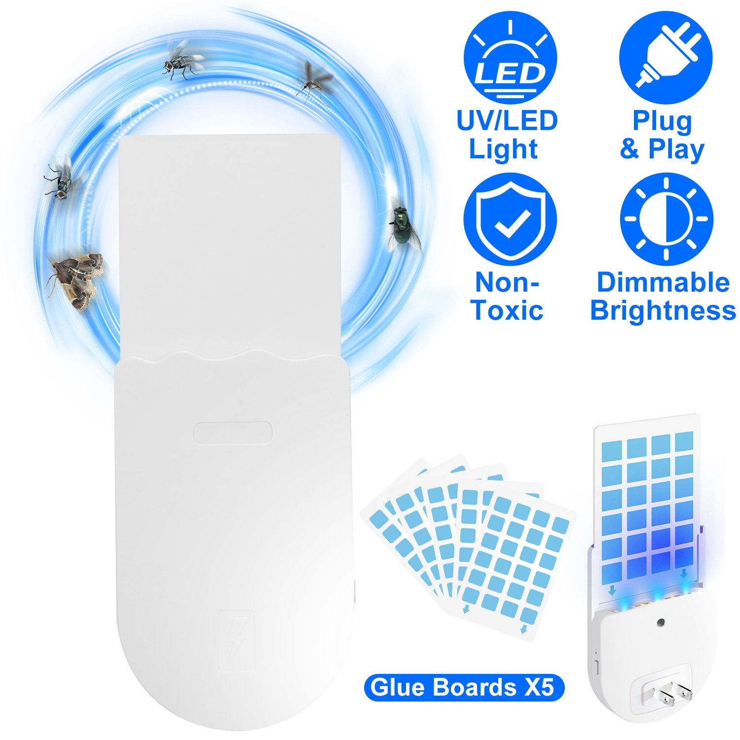 Home > Plug-In Indoor Flying Insect Trap 5 Glue Boards UV Light Mosquito Killer With Night Light Dimmable Brightness Fly Odorless Safe Bug Zapper for Gnat Mo