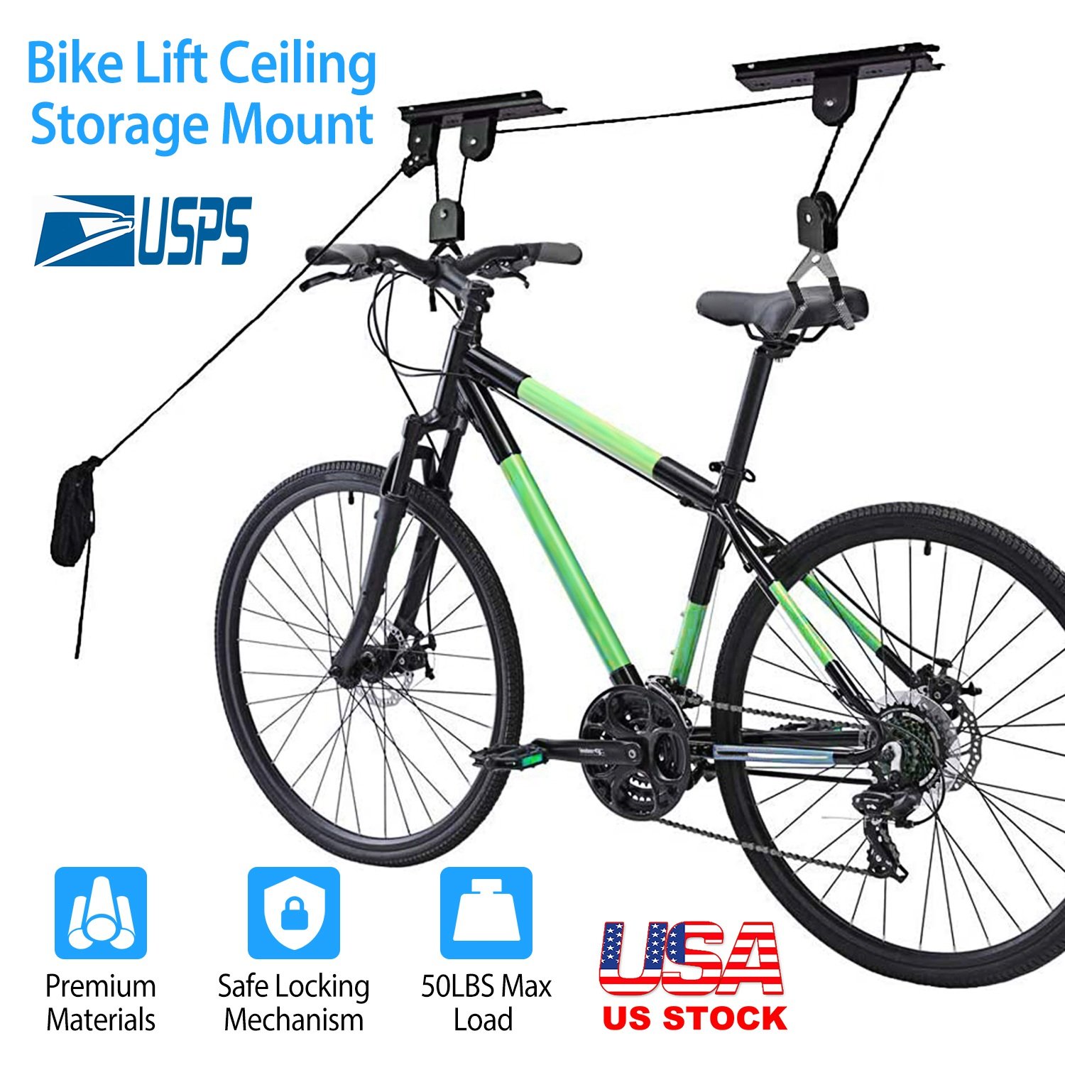 Home > Bike Lift Ceiling Storage Mount 50LBS Load Bicycle Hoist Pulley Rack Heavy Duty Hanger w/ 48FT Rope For Ladder Kayak
