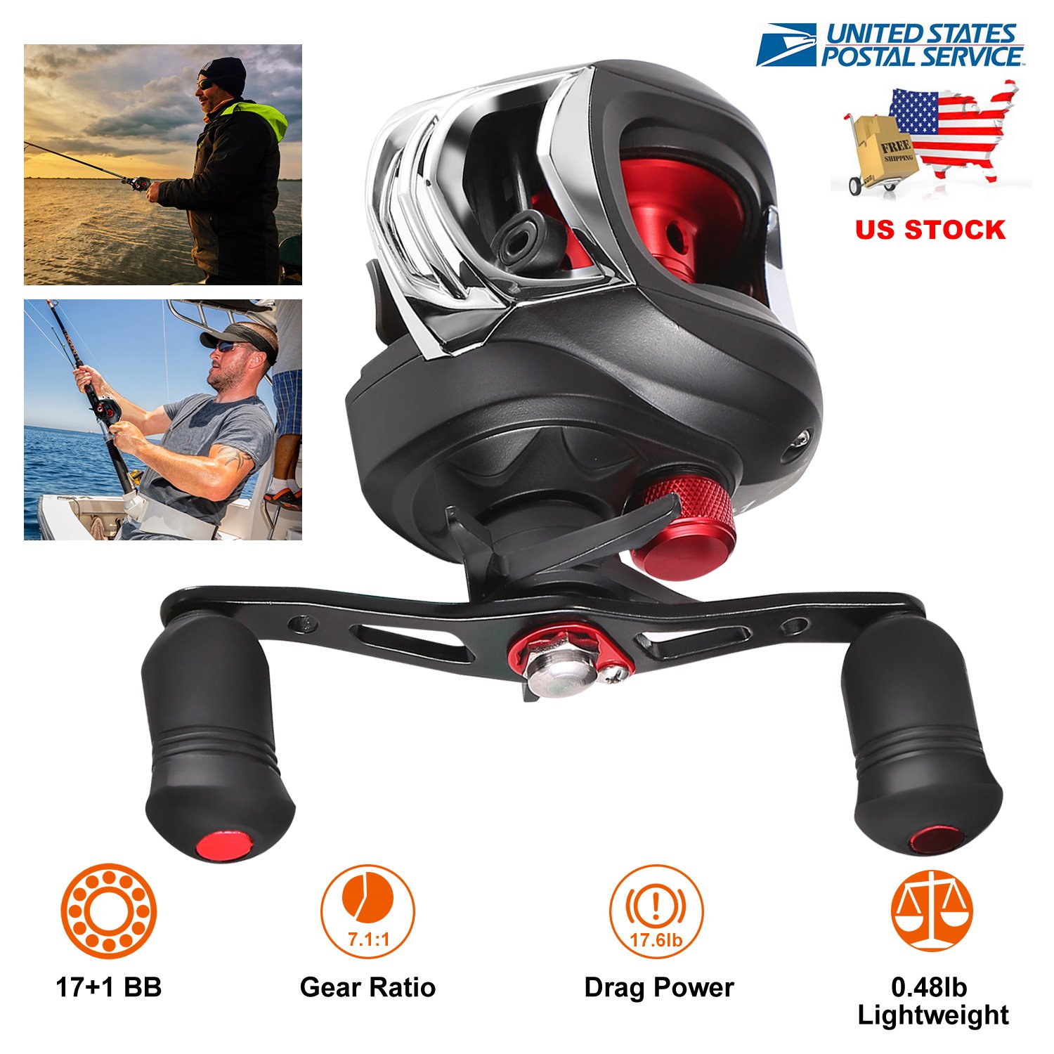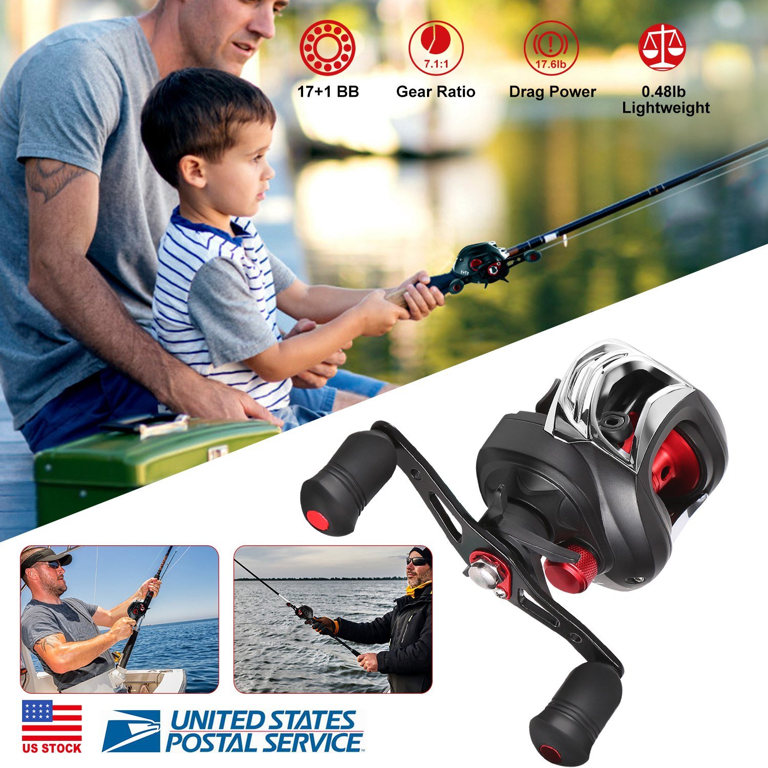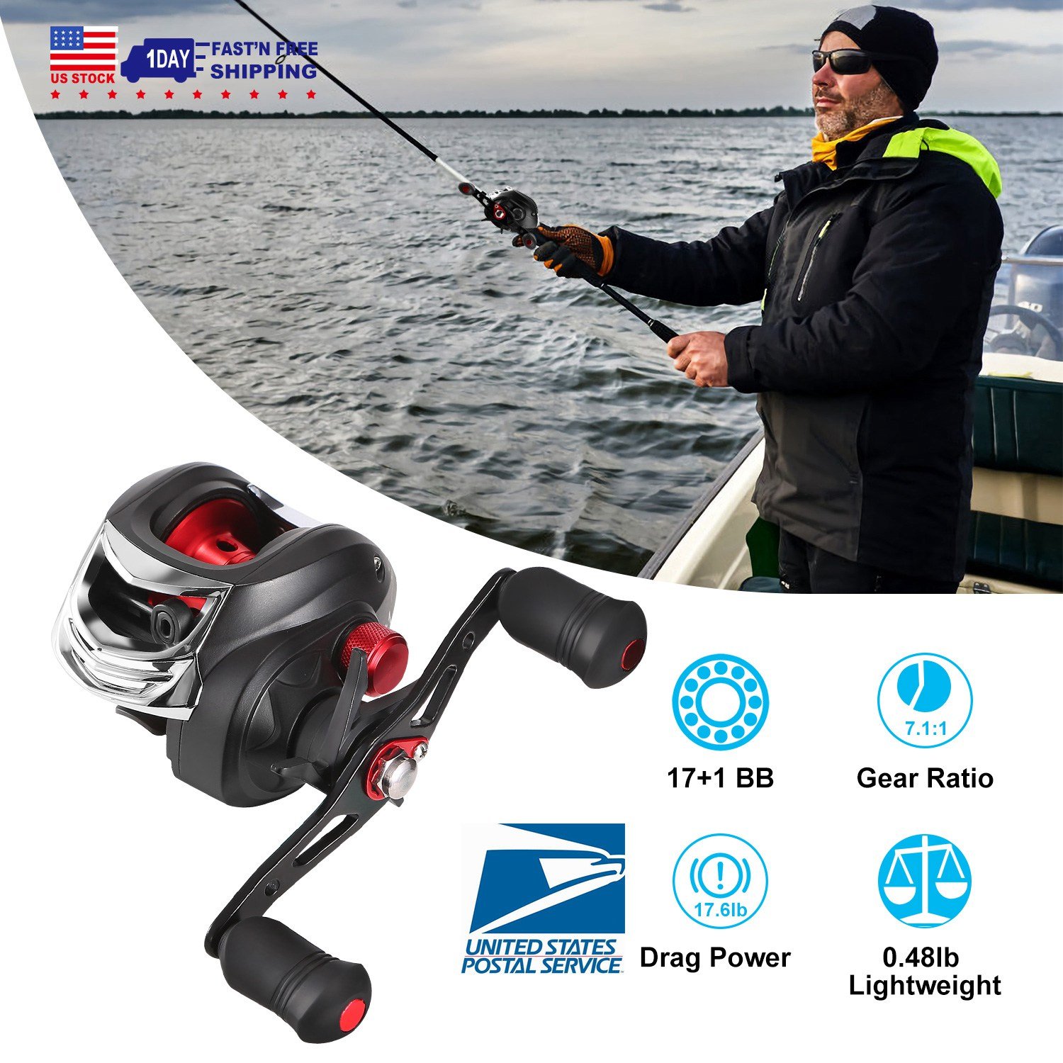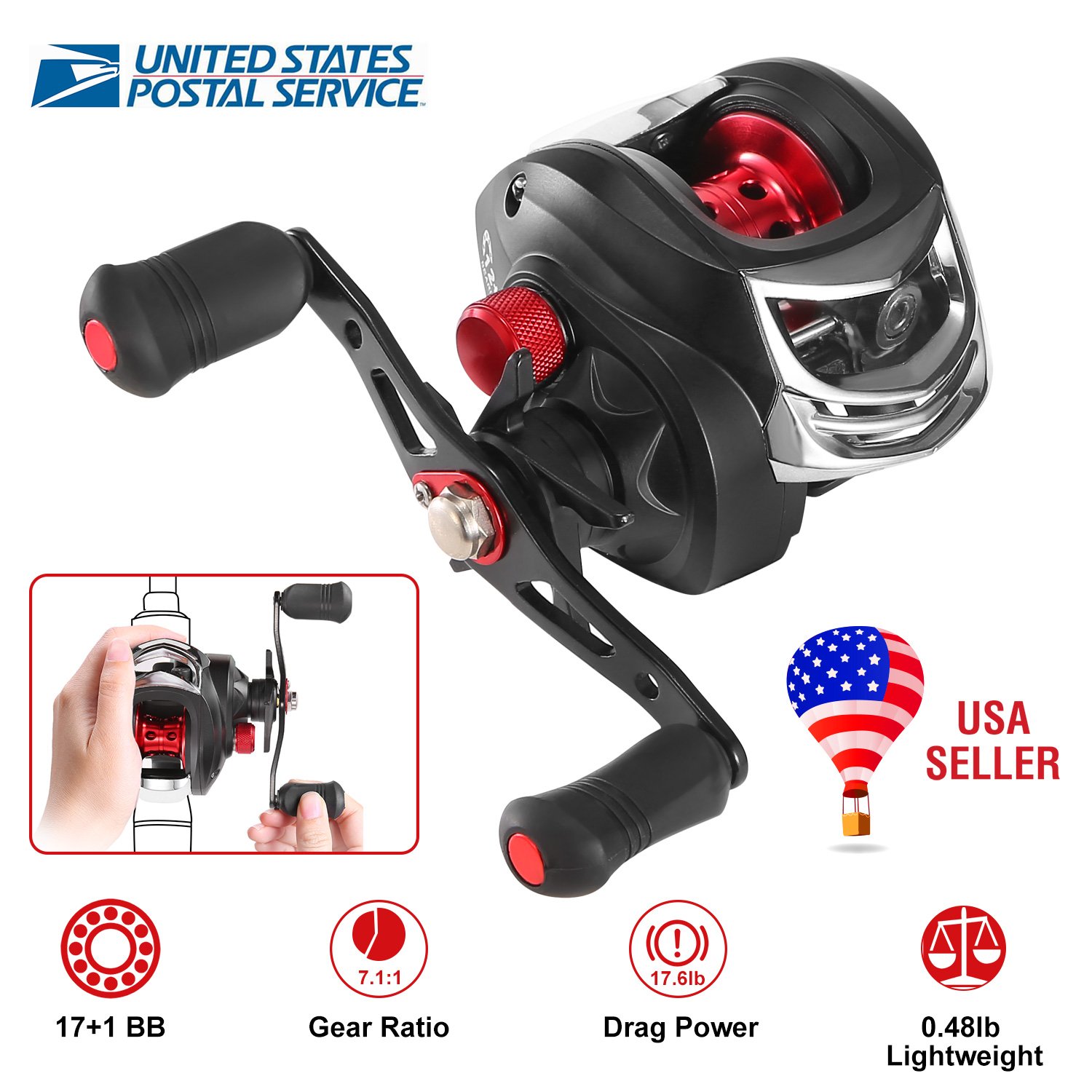 Home > Baitcasting Fishing Reel 17.5lbs Max Drag Baitcasters 17+1 BB 7.1:1 Gear Ratio Baitcast Fish Reel High Speed Long Cast Distance