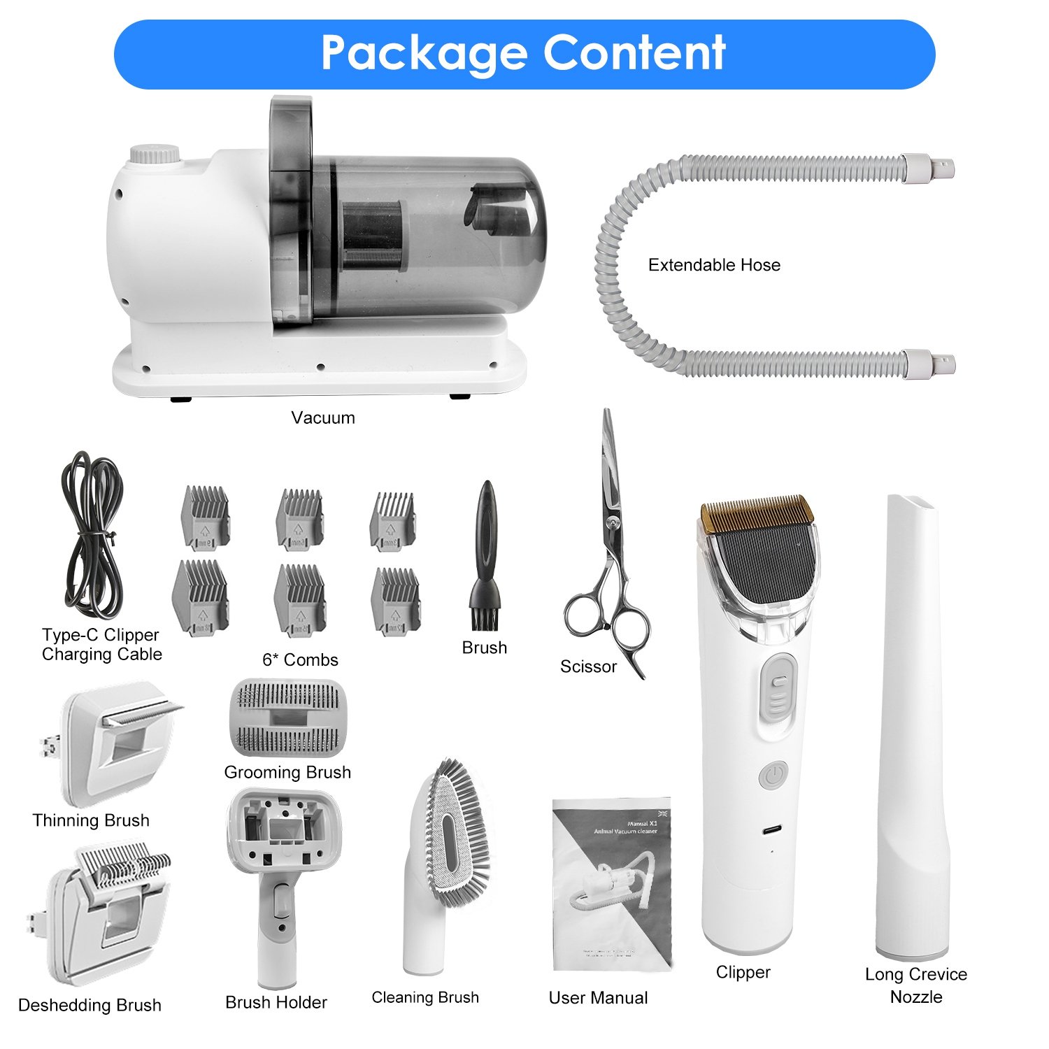 Home > Professional Pet Hair Grooming Vacuuming Kit with 7 Grooming Tools Dog Clipper 2.5L Dust Cup 10000PA Strong Suction Low Noise Hair Remover Pet Hair Gr