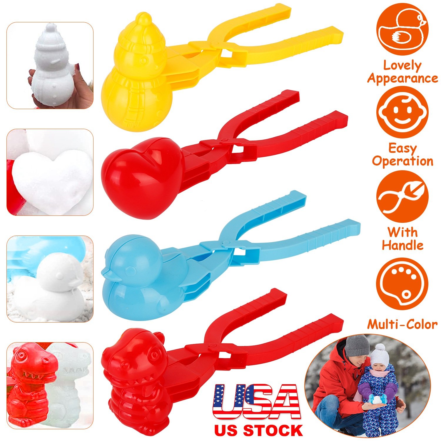 4Pcs Snowball Makers Set Clip Snow Molds Toys Beach Sand Toy with Handle for Snow Fight Winter Activities