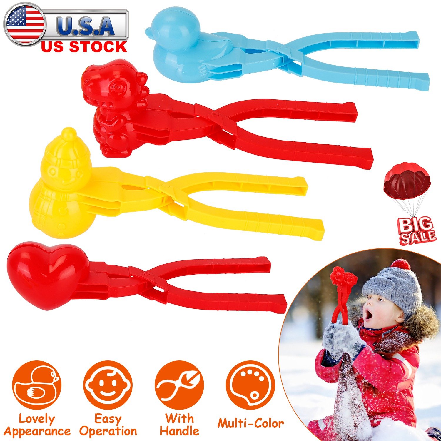Home > 4Pcs Snowball Makers Set Clip Snow Molds Toys Beach Sand Toy with Handle for Snow Fight Winter Activities
