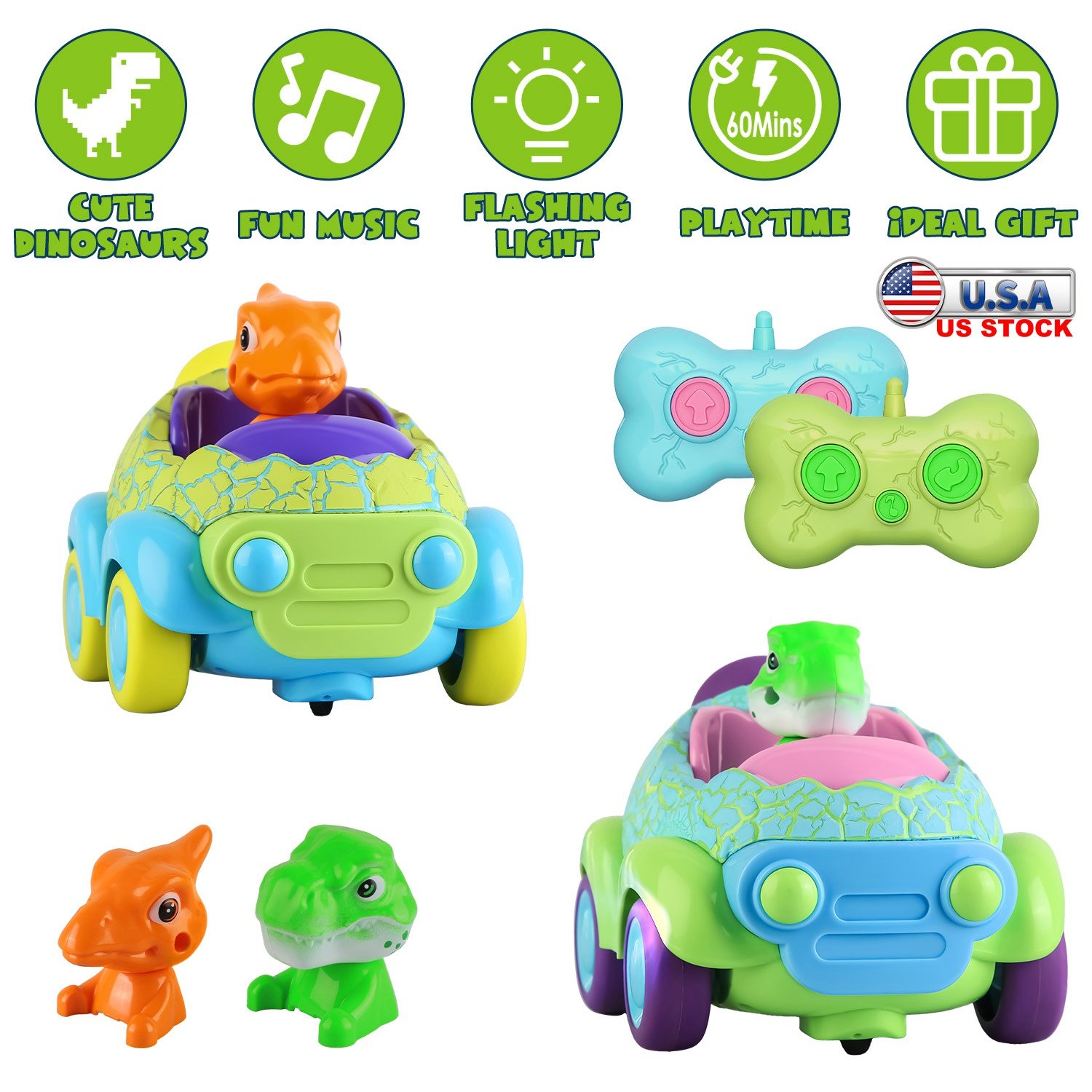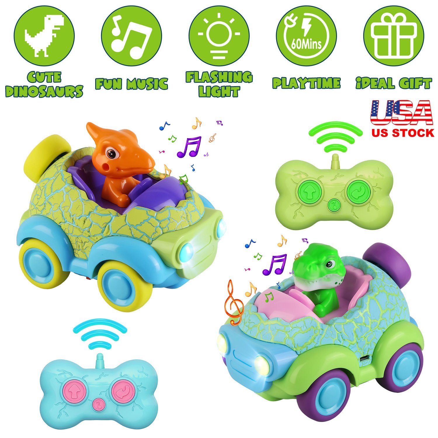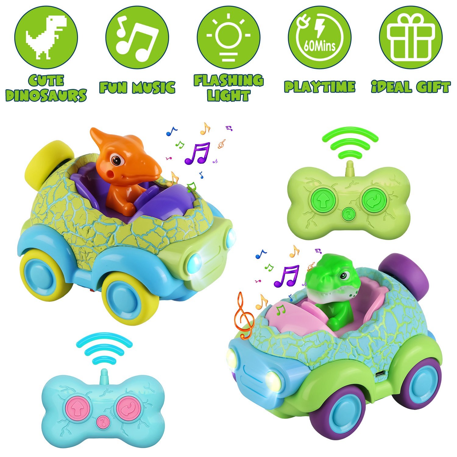 2Pack Dinosaur Remote Control Cars for Toddlers Rechargeable RC Cars with Light Music Birthday Gift For Boys Girls Aged 3 4 5 6 Years Old