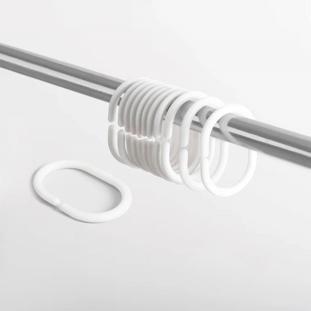 • Set includes 1 shower curtain, 12 plastic rings, and 1 mini tote