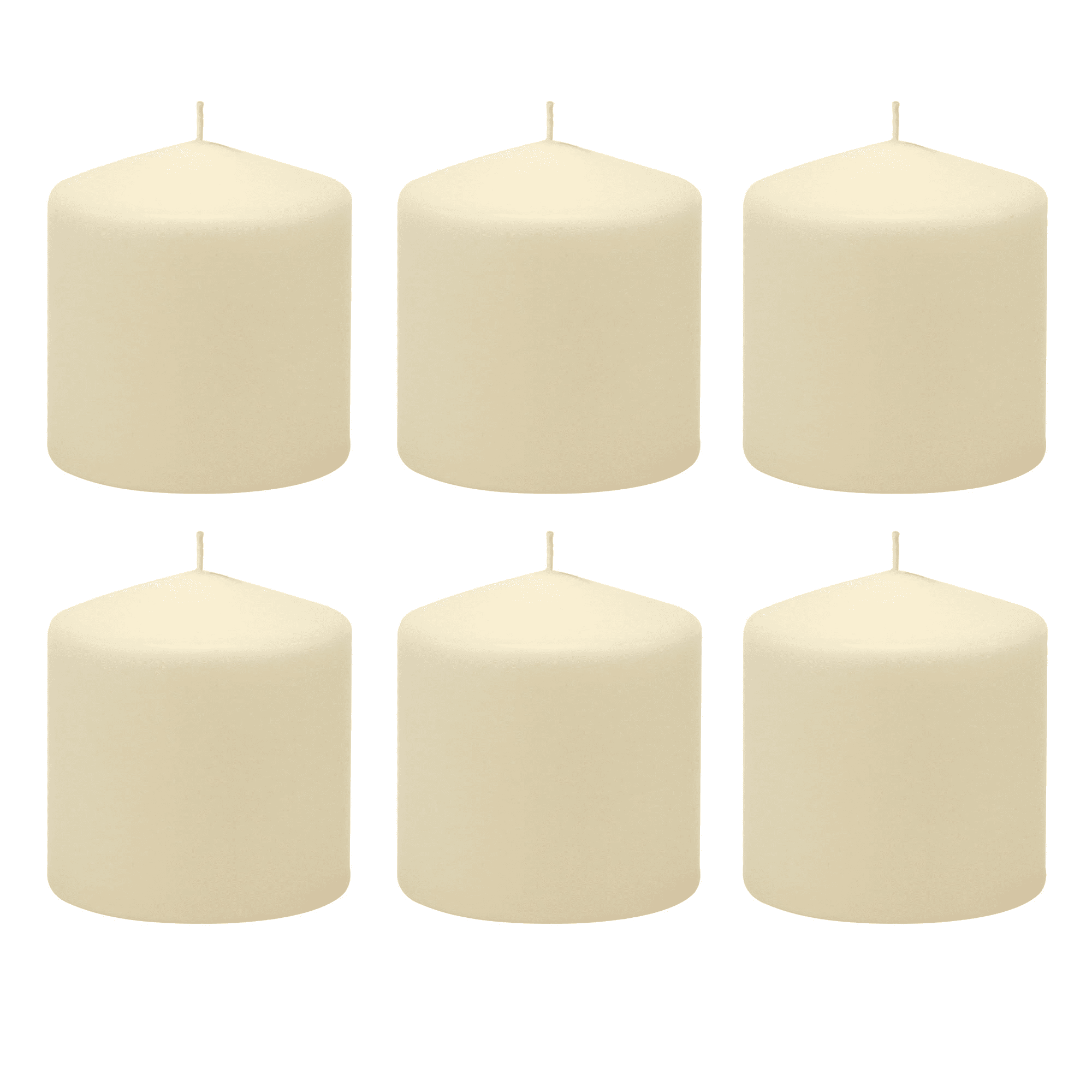 Included: stonebriar 3" x 3" unscented 1-wick ivory pillar candles, 6 pack